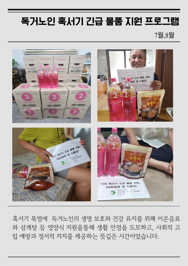 재가노인지원서비스 2차 혹서기 복날 마음을 채워주는 사랑의 삼계탕 이온음료 나눔
